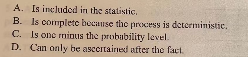 同学你好,从有限的信息这样解释:运用历史模拟法计算VAR值时时不需要用到统计量的(即均值和波动率),所以A错;运用不同的方法计算VAR值的结果可能是不同的,所以过程不是确定的,所以B错。这种题目太过简洁,信息有限,建议跳过。