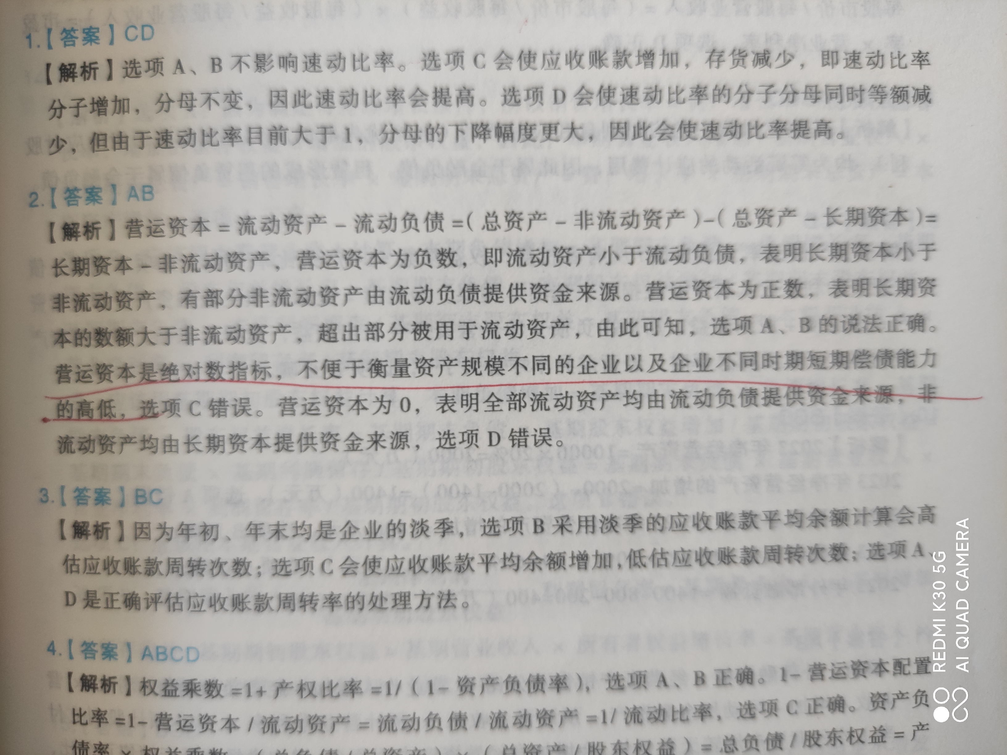 同学您好 打个比方说A公司的营运资本是100-20=80;B公司的营运资本是150-70=80;AB公司营运资本一致,此时不能简单的判定为AB公司短期偿债能力一样的