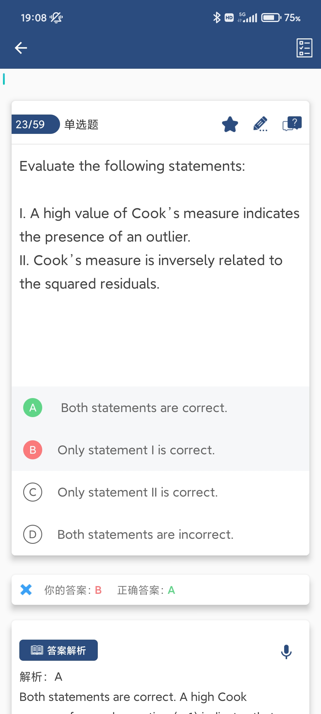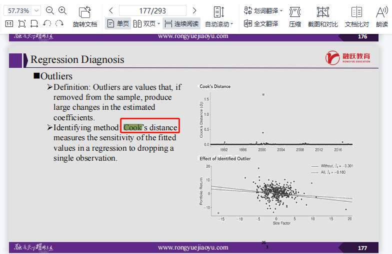 同学你好,这里说的是cook distance,具体位置参考图片