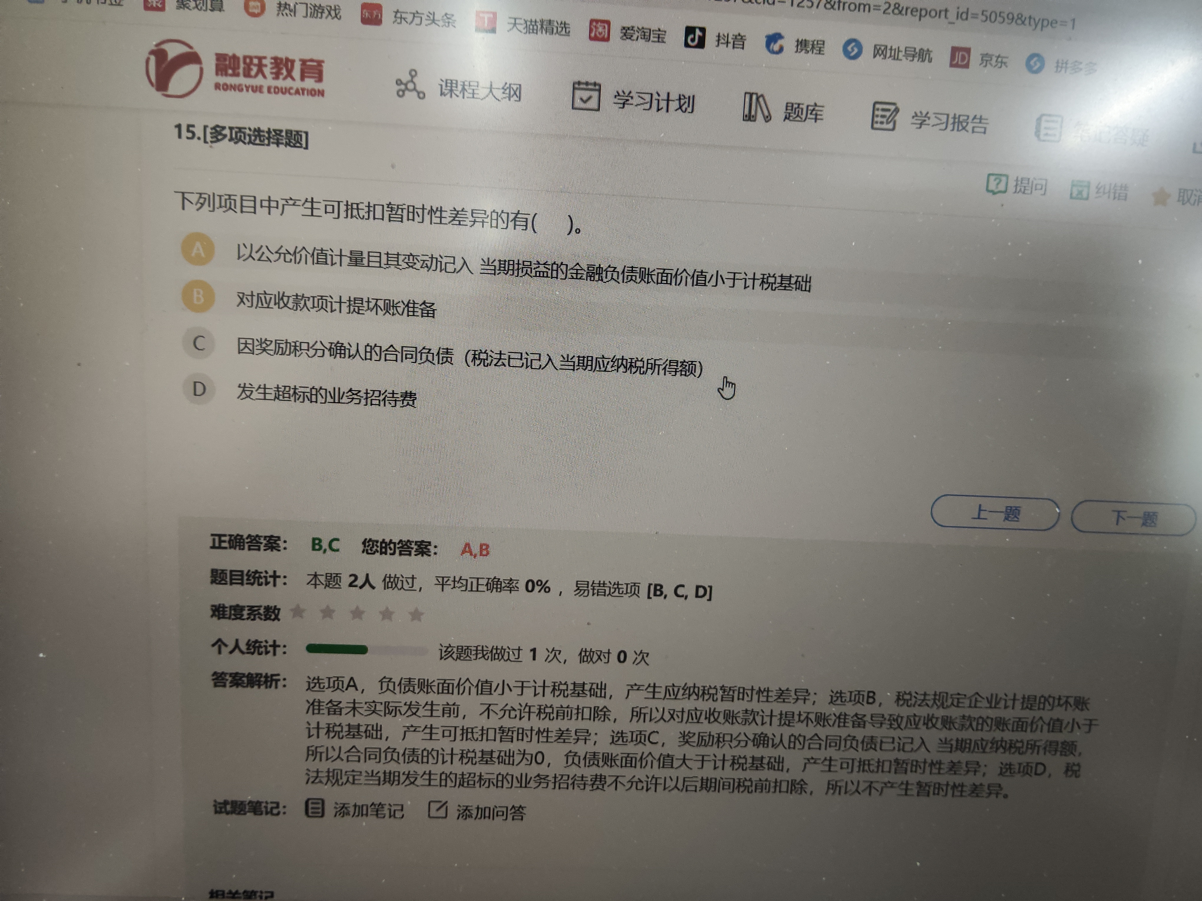 同学您好 有奖励积分的时候税法上需要全额纳税,而会计上是将收到的价款在商品和奖励积分上分摊,奖励积分部分计入合同负责,其他的作为收入,但是这部分奖励积分对应的收入在现在已经缴纳过税了,因此未来在实际实现收入的时候是可以扣除的,即在未来是不需要再纳税了,因此未来可抵扣的金额等于现在的账面价值,计税基础就为0