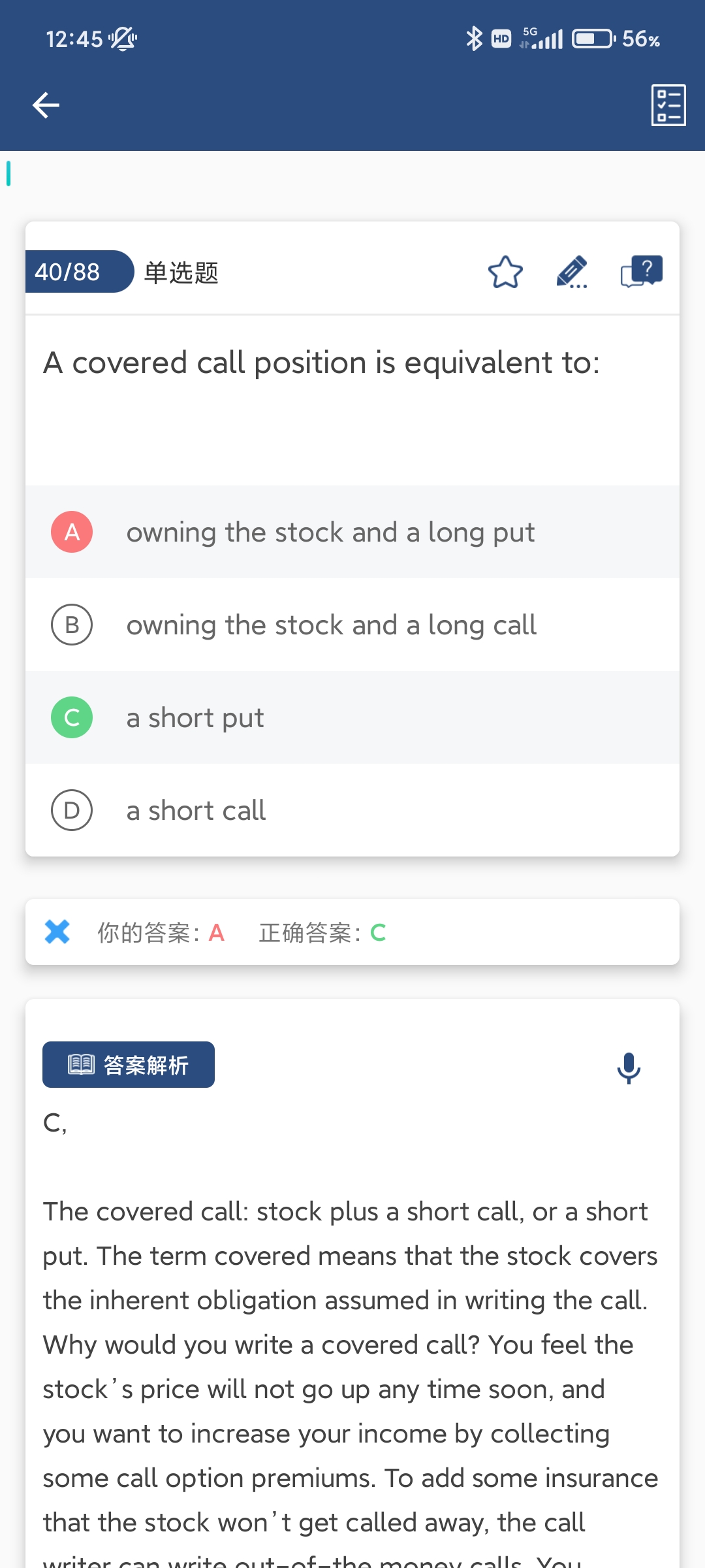 同学你好,short call 不等于long put,具体参考图片理解