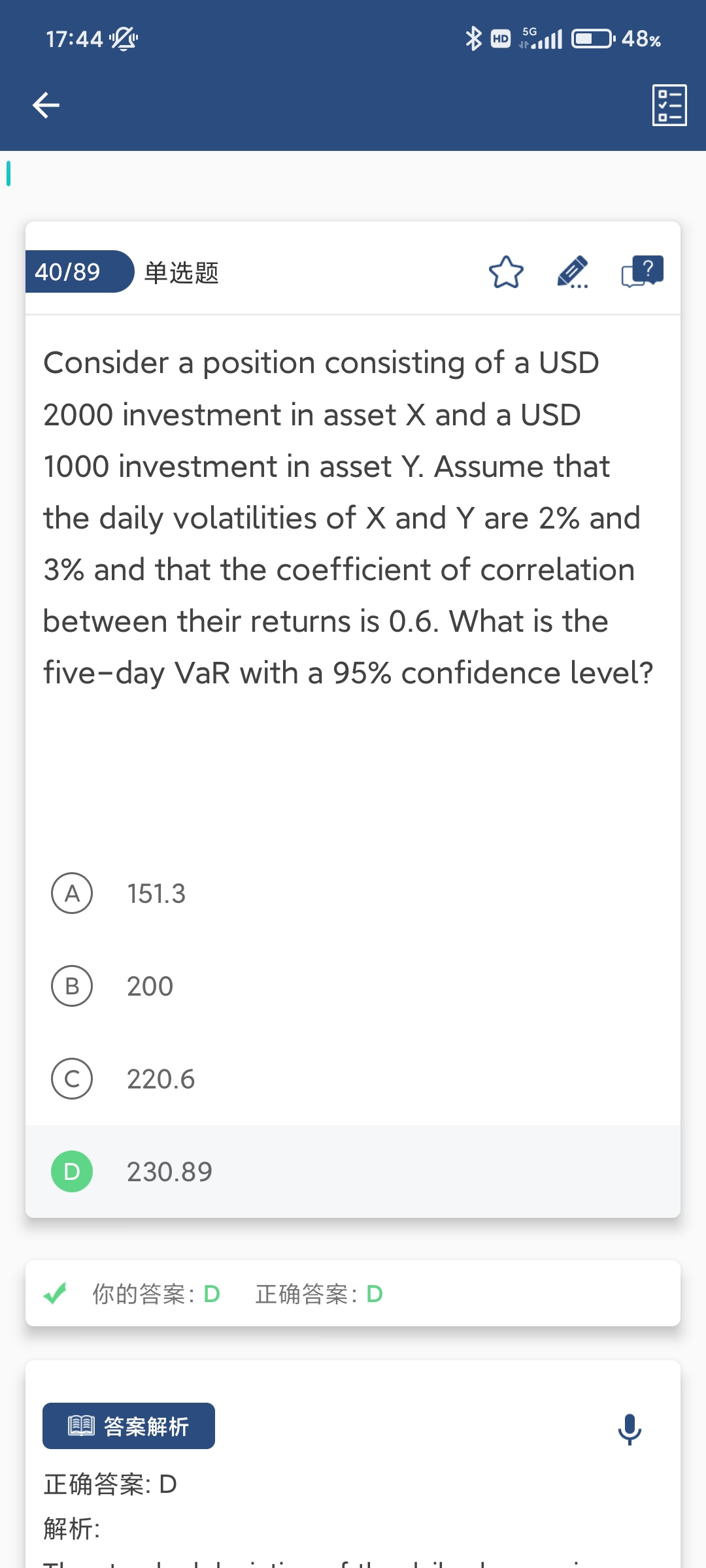 关于第二问题的回答没有理解,为什么金额要开方,不应该是金额乘以标准差吗?金额题目中不是给了吗?一个USD2000一个USD1000