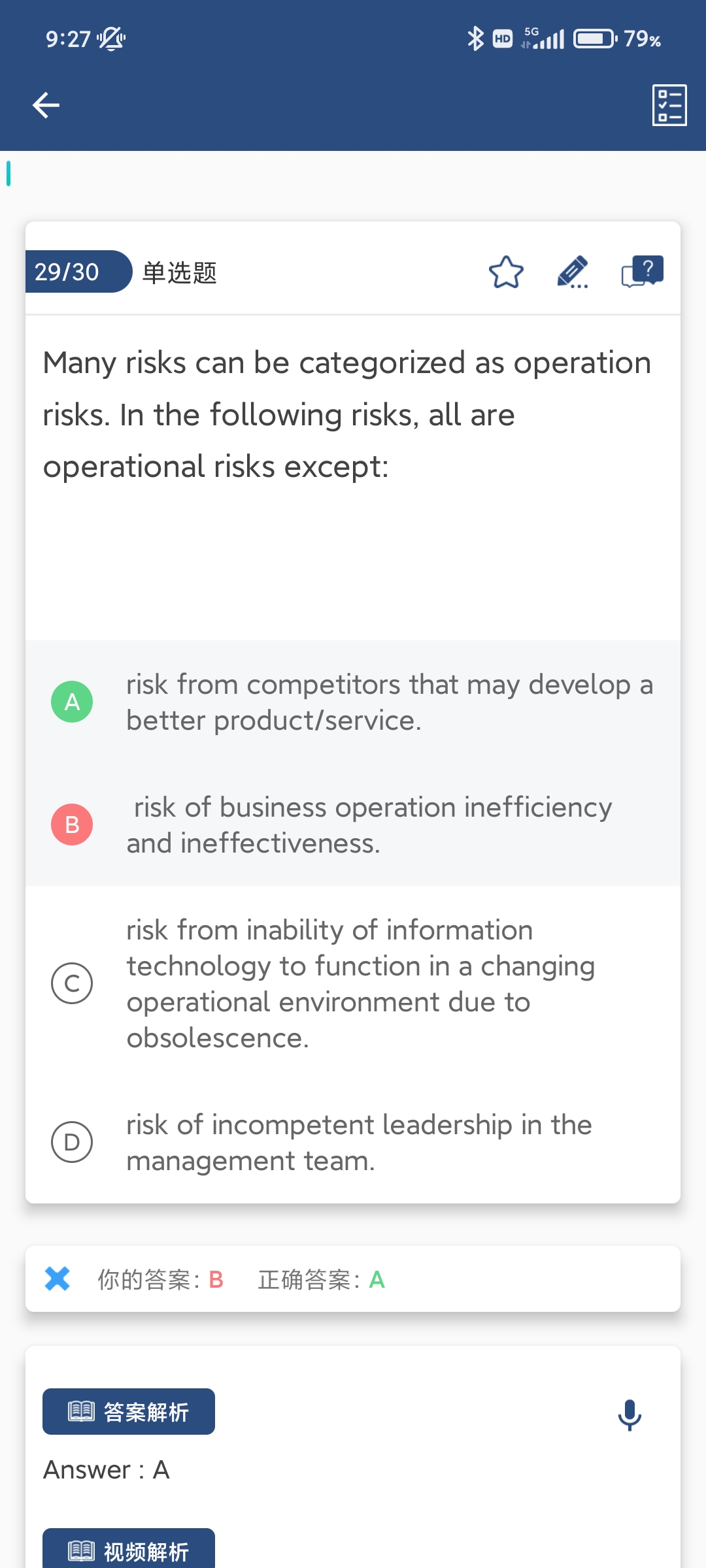 题目要求选的答案是,不在操作风险类别当中的,A选项不是操作风险,是业务风险