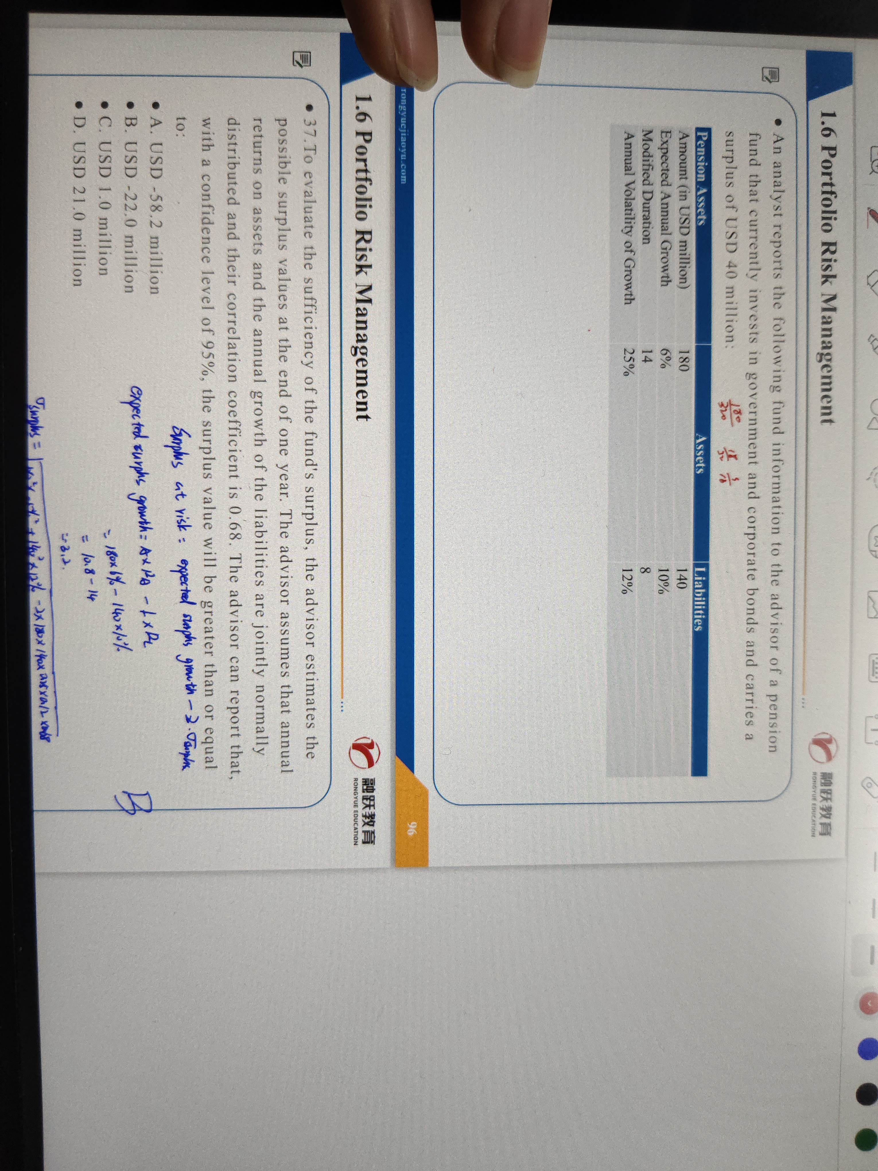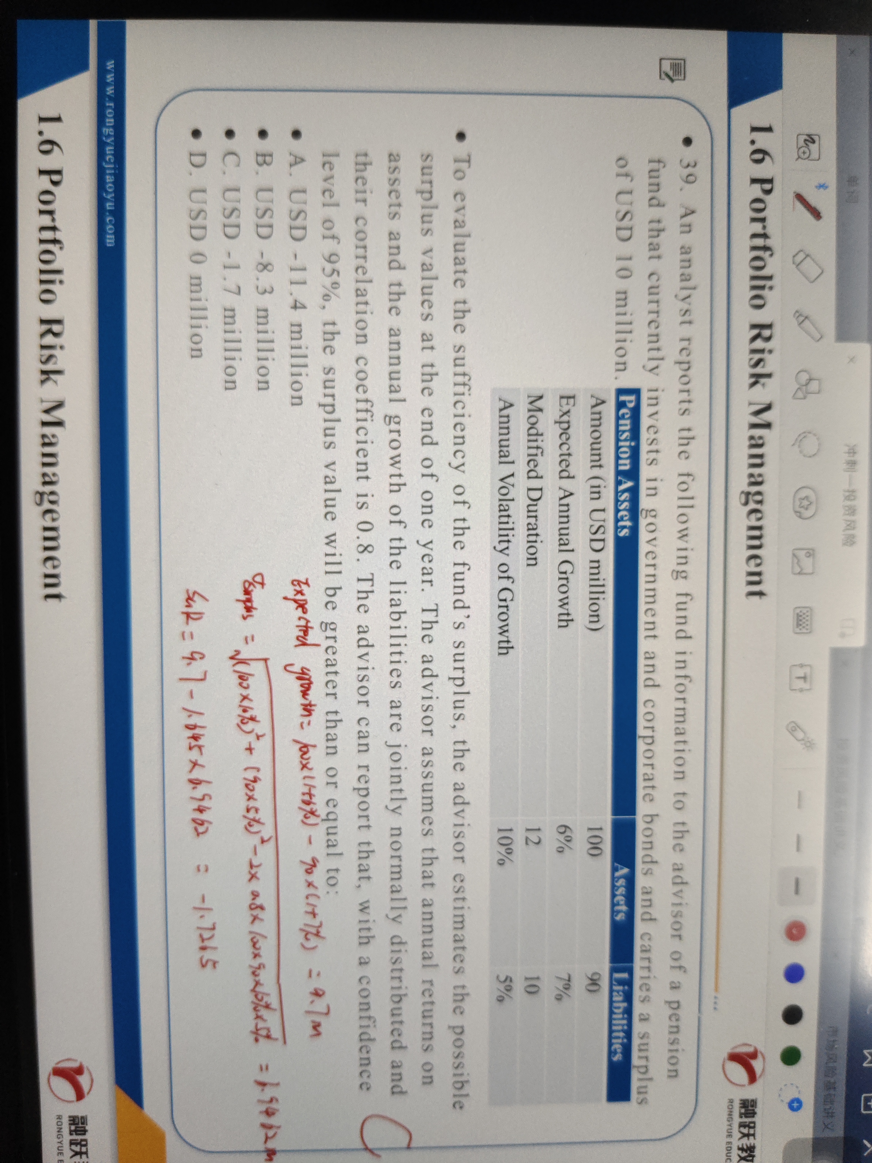 这是两种算法,一种是基于初始surplus,一种是基于expect surplus。在expect surplus的方法下,A(1+rA)-L*(1+rL),这个过程你发现没有,实际上是已经考虑了起初的surplus是10mil这个情况了,所以最后就不再需要从初始surplus出发