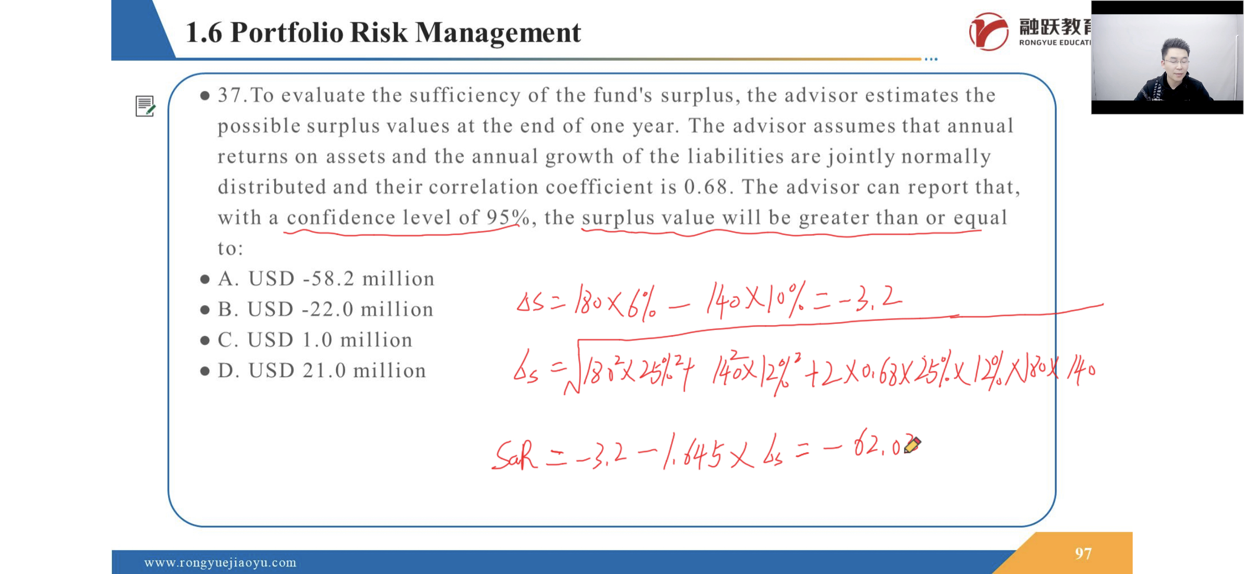 这两道题是同一题干,有两问;SaR中用的方差是surplus的方差?不是surplus growth的方差?
