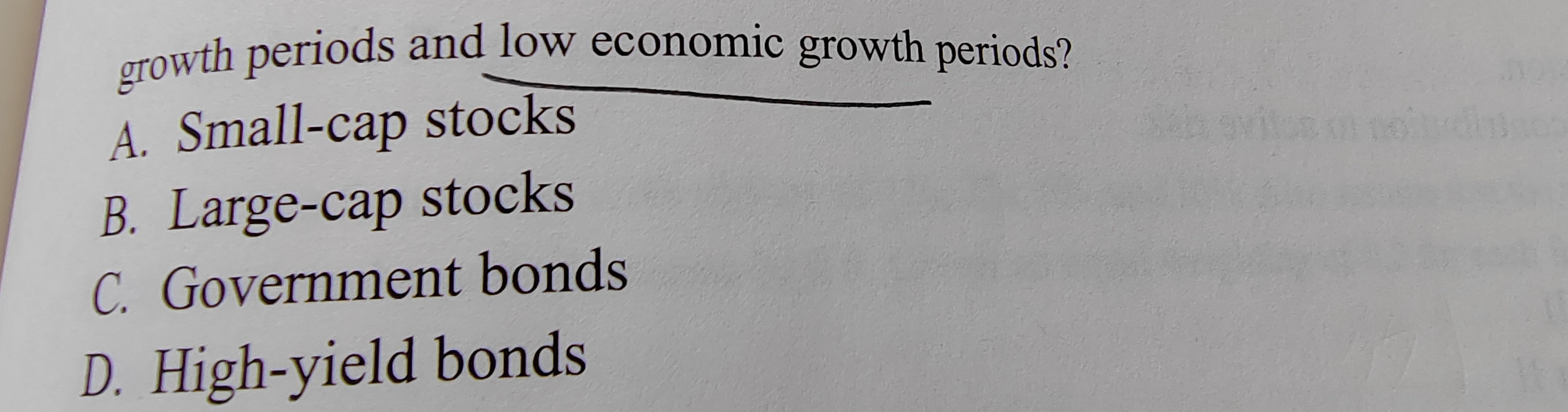 同学你好,这道题说的意思是高收益债在经济增长期不如股票那么好,而在经济衰退期没有国债那么好,所以在经济增长期和衰退期的表现都没有表现出很大的波动,所以收益比较相似,了解即可。
