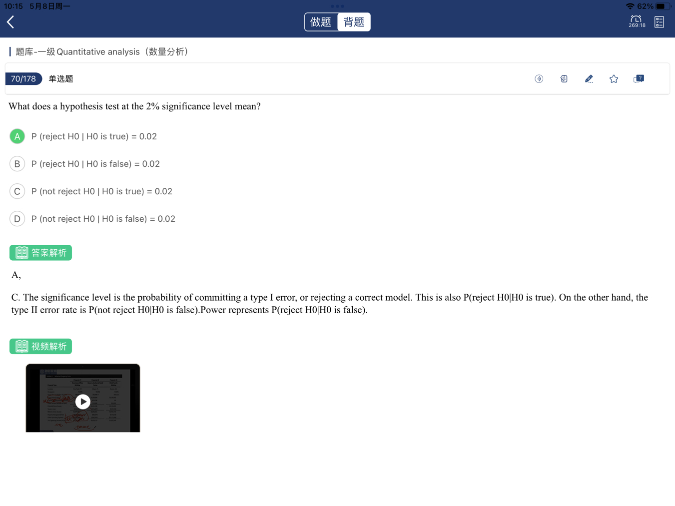 同学你好,在假设检验当中,一类错误的概率是等于显著度水平,所以显著度水平可以用一类错误的定义来表达,即原假设是正确的,但是我拒绝了,也即是选项A的表达公式。