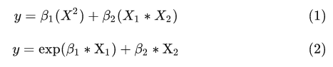 同学你好,我们所学的线性回归模型中的线性假设指的是回归系数而不是自变量。“线性”指的是各参数 β是可以以自变量作为权重进行线性相加。如果方程包含自变量的N次项,则将自变量视为一个整体来考虑。举例说明,方程(1)是“线性的”,因为自变量可以用括号括起来当做一个新变量,而分离出参数β;而方程(2)则为非“线性的”,因为自变量与参数 β1无法分离出来。方程(1)和(2)参考图片。这个点容易混淆,记住即可。