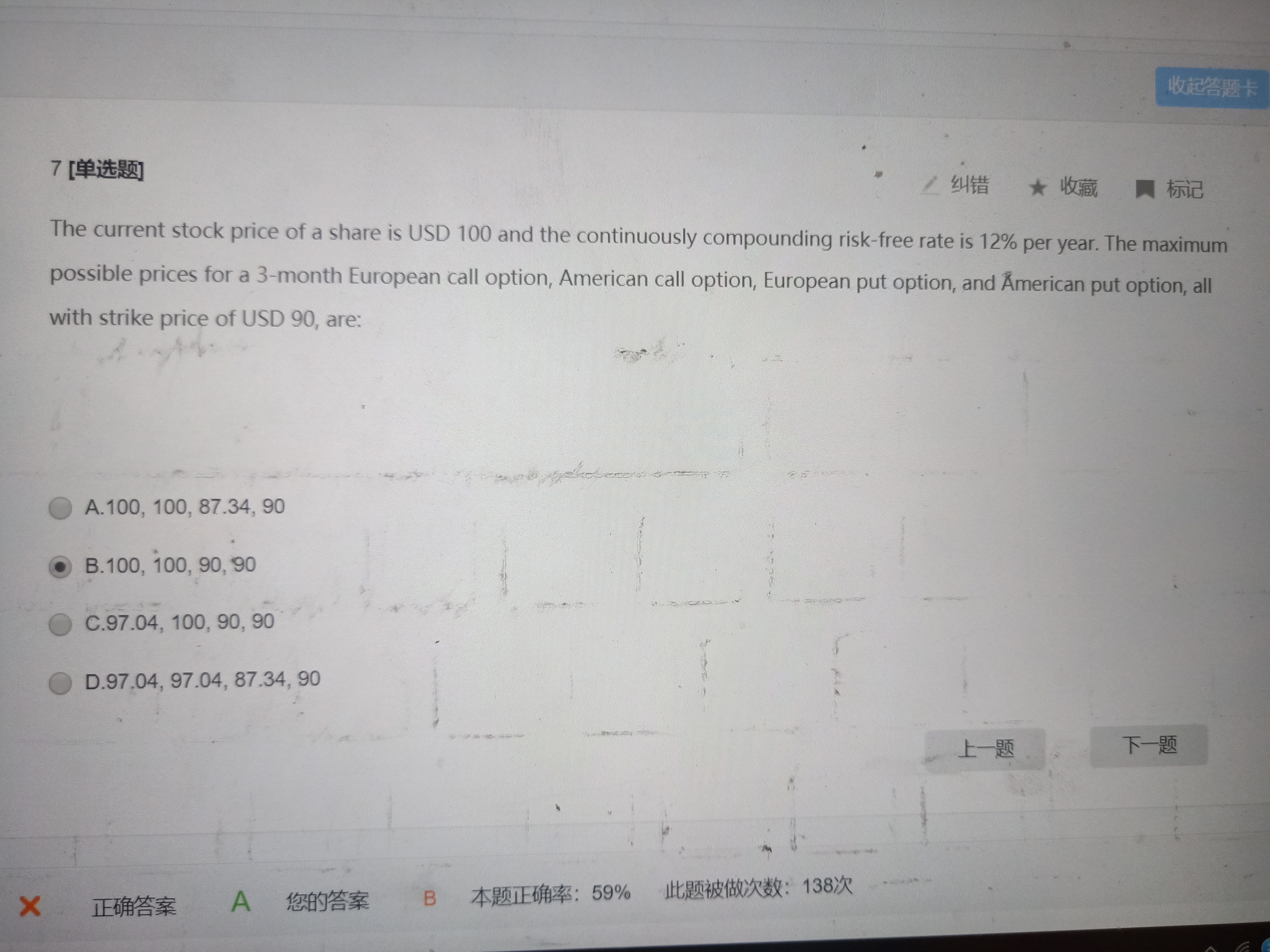 题干不是说让你求 欧式看涨期权,美式看涨期权, 欧式看跌期权,美式看跌期权;四种期权的最大值吗