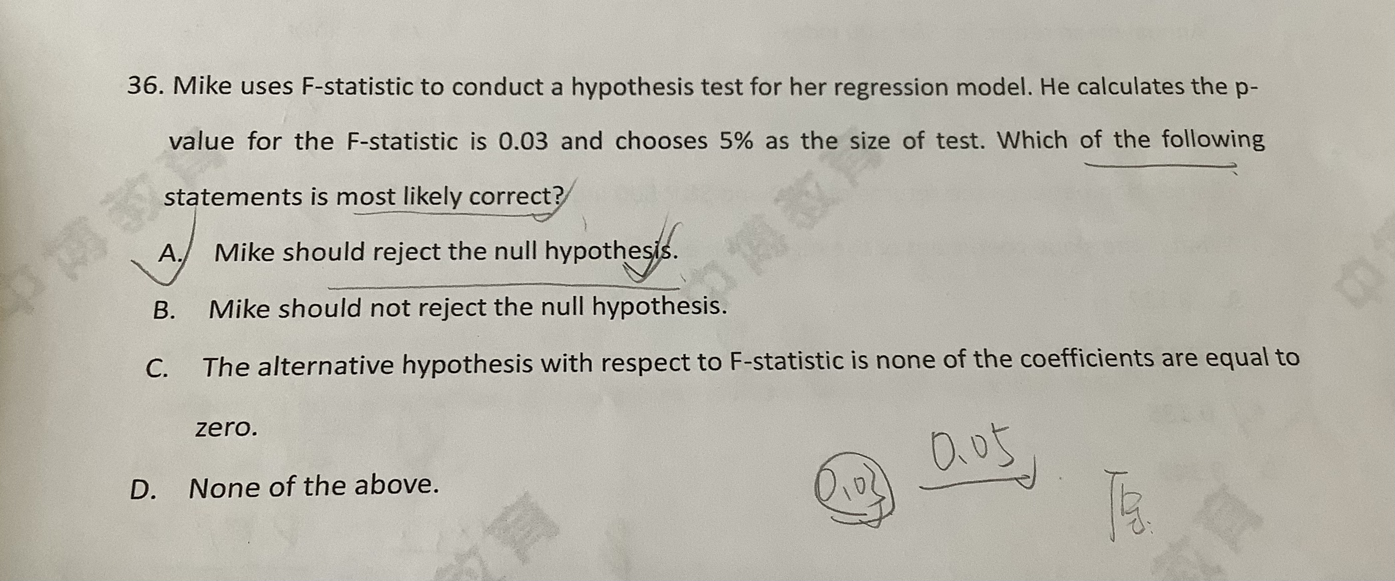 你这个习题册的答案应该是有问题的。p值小于显著性水平,是要拒绝原假设