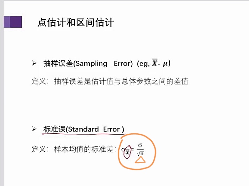 同学你好,第一个问题:标准误指的就是样本估计量(一般指的就是样本均值)的标准差;第二个问题:定义里面有根号n分之一是为了跟总体标准差相区分(总体标准差不用除以根号n分之一),而置信区间的一般公式里面没有根号n分之一是因为置信区间基本指的就是样本数据,σ就代表标准误了,所以,就直接用σ代替σ除以根号n了,了解即可。
