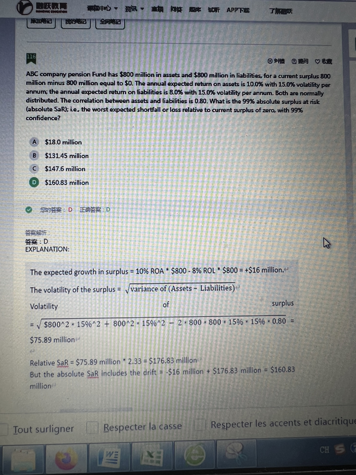 你看解析里面的第一个等式,算出来16个mil的部分,这个部分,其实就已经包含了surplus的最初状态了。如果初始的A和L不相等,那你想想,算完资产负债增长以后的结果是不是也会把初始结果的差异体现出来