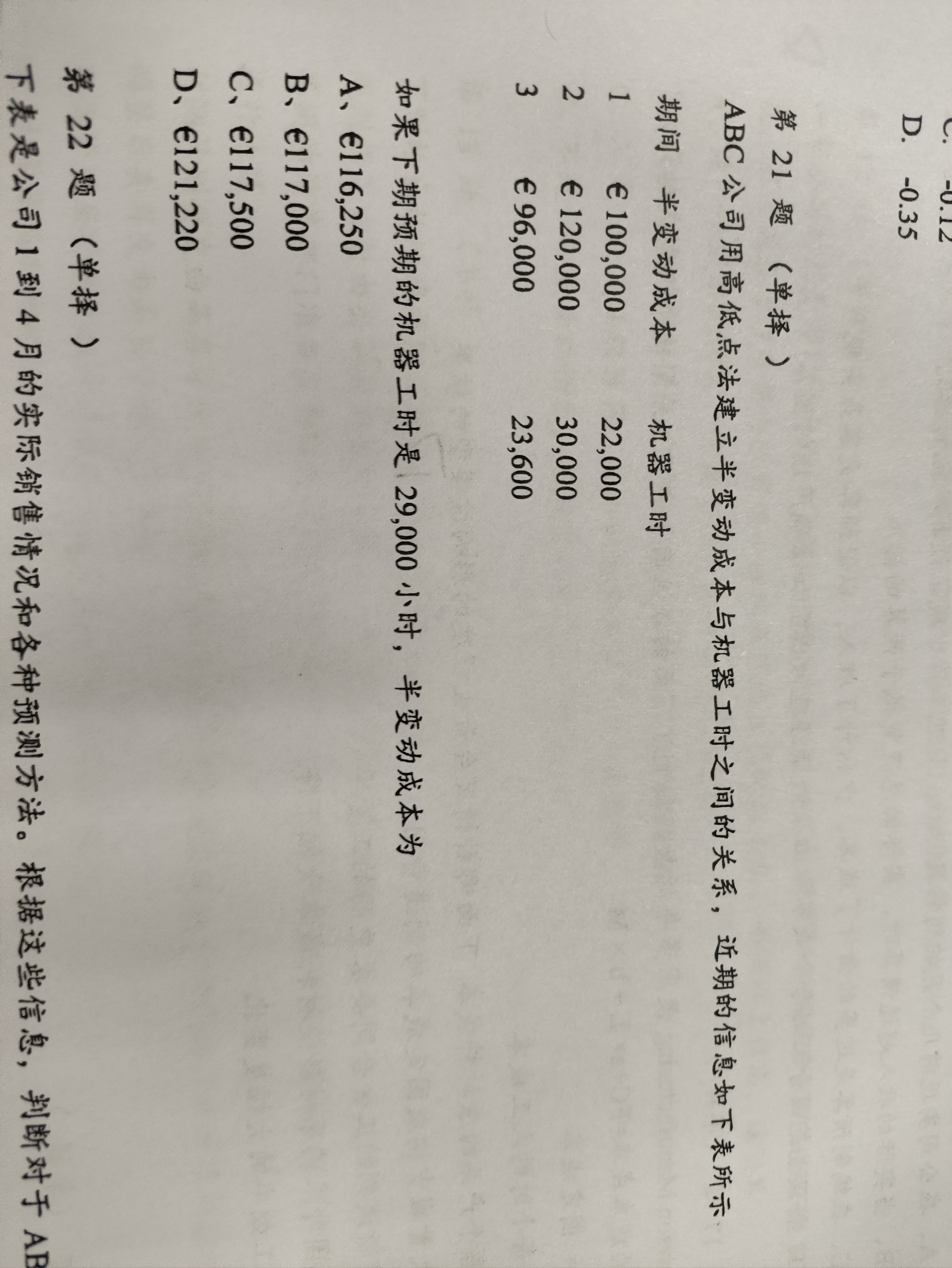 同学你好,机器工时29000小时,属于30000小时与23600小时之间,所以选择这两个数值。假设29000小时时,半变动成本为X,所以(30000-29000)/(120000-X)=(30000-23600)/(120000-96000),X=116250
