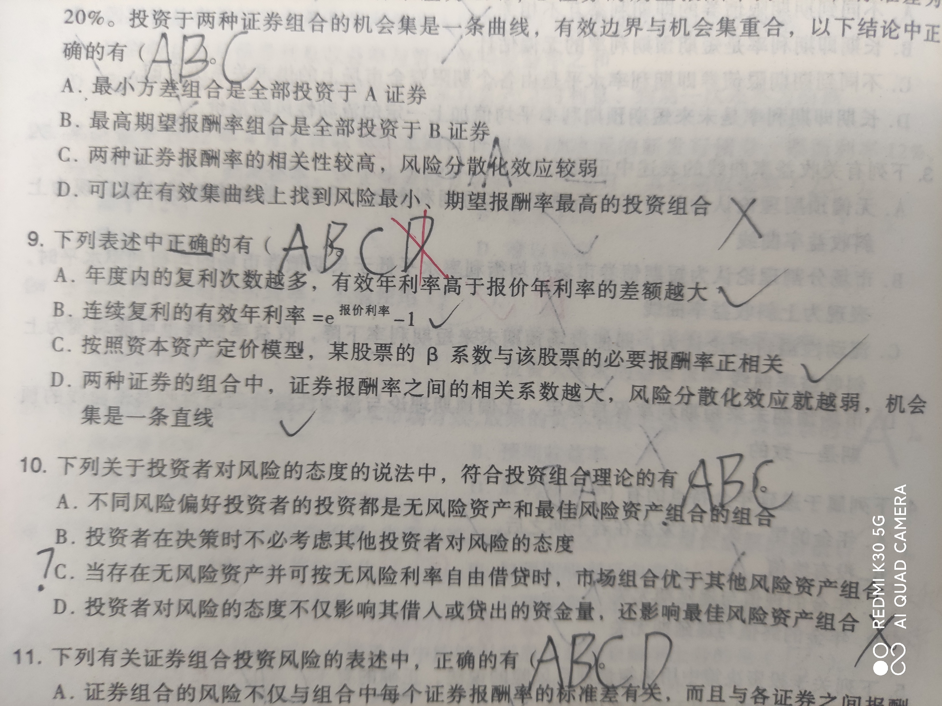 同学您好 错在最后的机会集是一条直线这里,当相关系数=1时才会是直线的