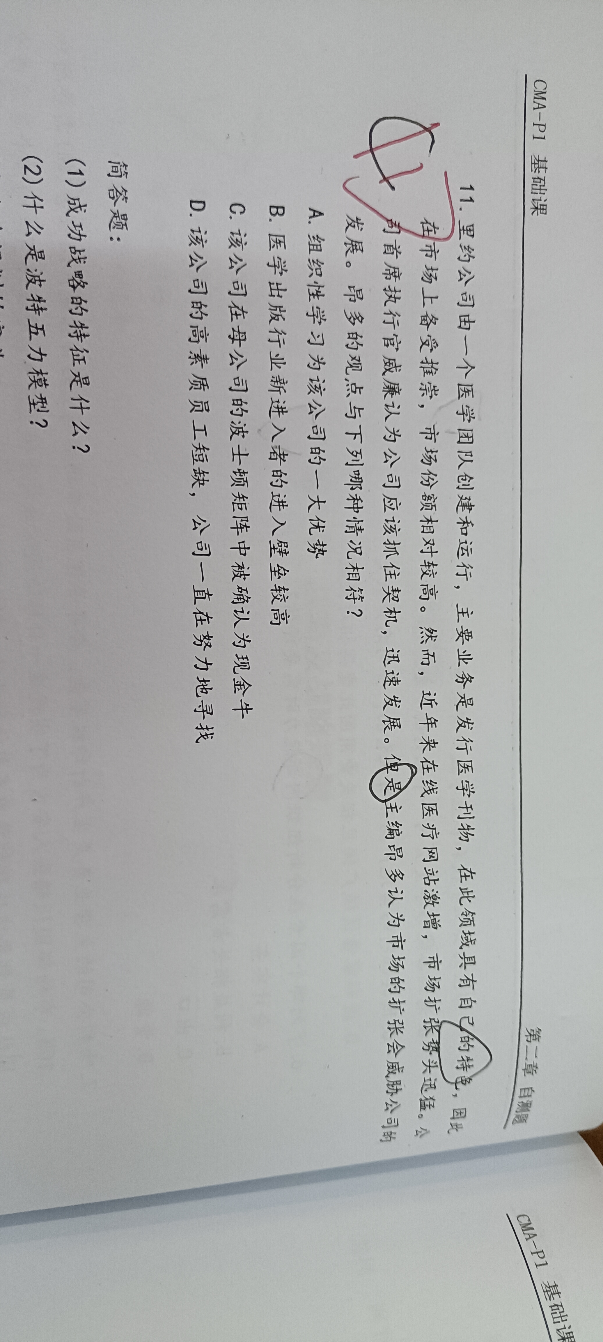 同学你好,如果公司很难找到高素质的员工,会发现公司规模很难满足新兴市场的需求。因此昂多认为有可能因为新进入者而丧失一部分市场份额,所以扩张很有可能对公司造成一种威胁。