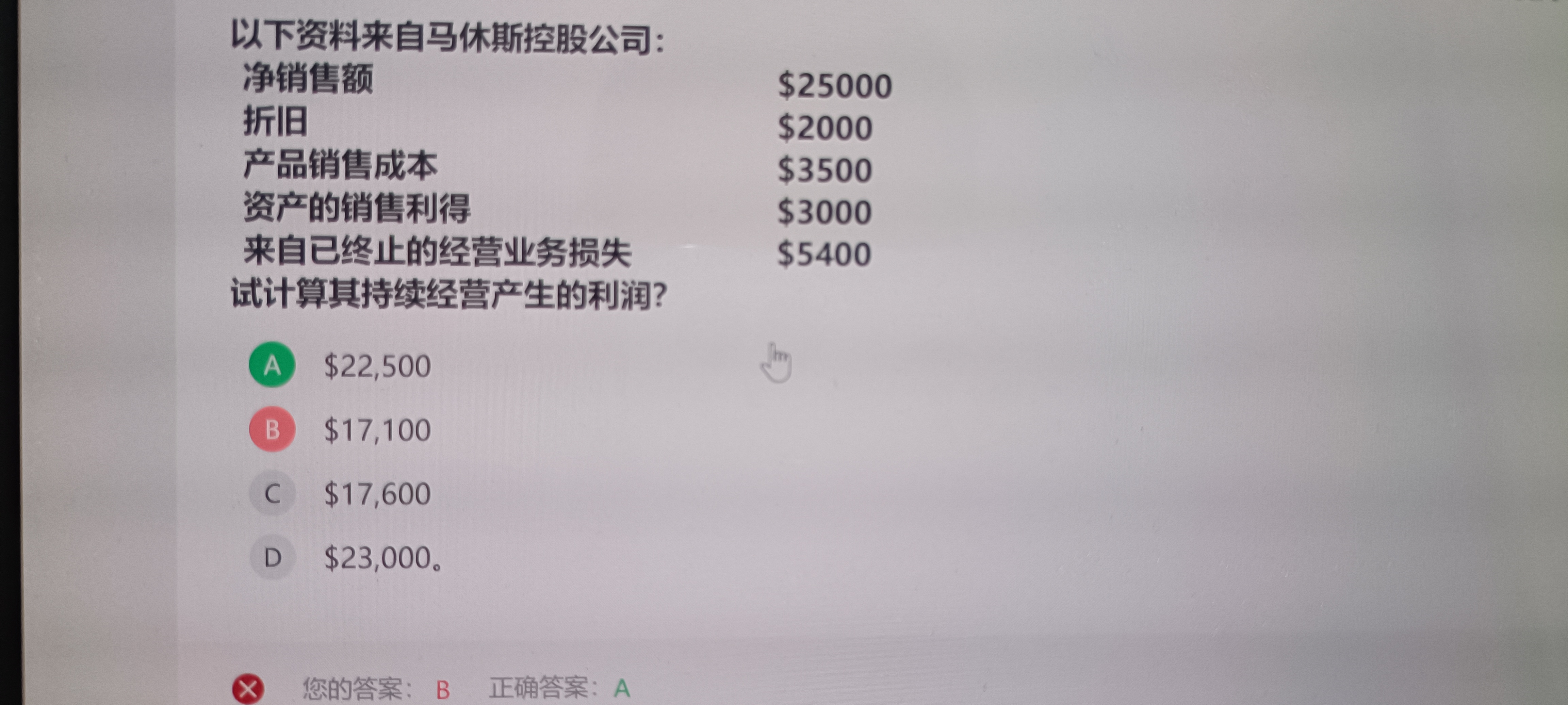 同学你好,题目问的是:持续经营状况下产生的利润,而题目中的损失5400来自已终止的项目,所以不用这项计算利润。