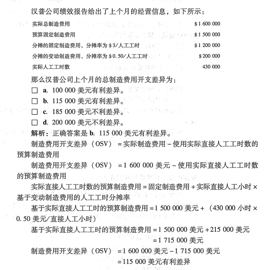 同学你好,这道题目目前条件应该是算不出固定制造费用的开支差异,所以例题进行了修改。修改为:A公司上个月的总制造费用开支差异。如下图: