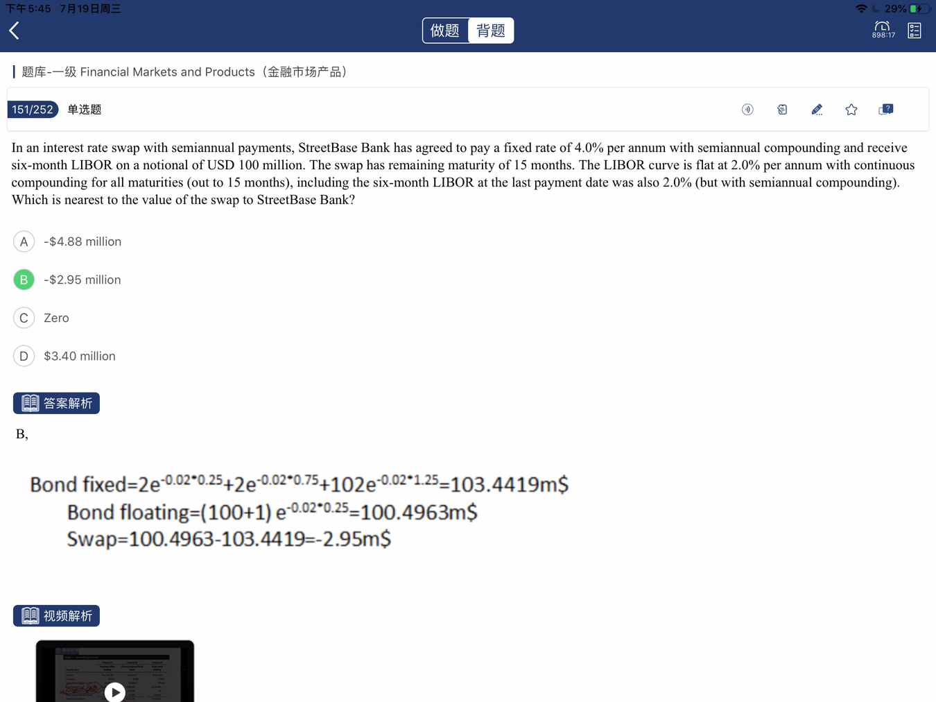 浮动利息债券每个付息日刚付完息后每个浮动利息债券都等于他的面值那第二个题十五个月的时候不是刚付完利息吗?此时的债券价值不就等于面值
