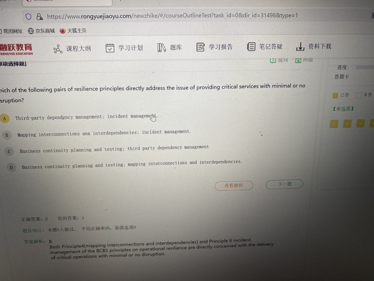 同学你好,Mapping interconnections and interdependencies指的就是对通过映射方法找出各个影响因素之间的关联,然后进行交叉统筹管理,尽量避免操作风险事件发生。