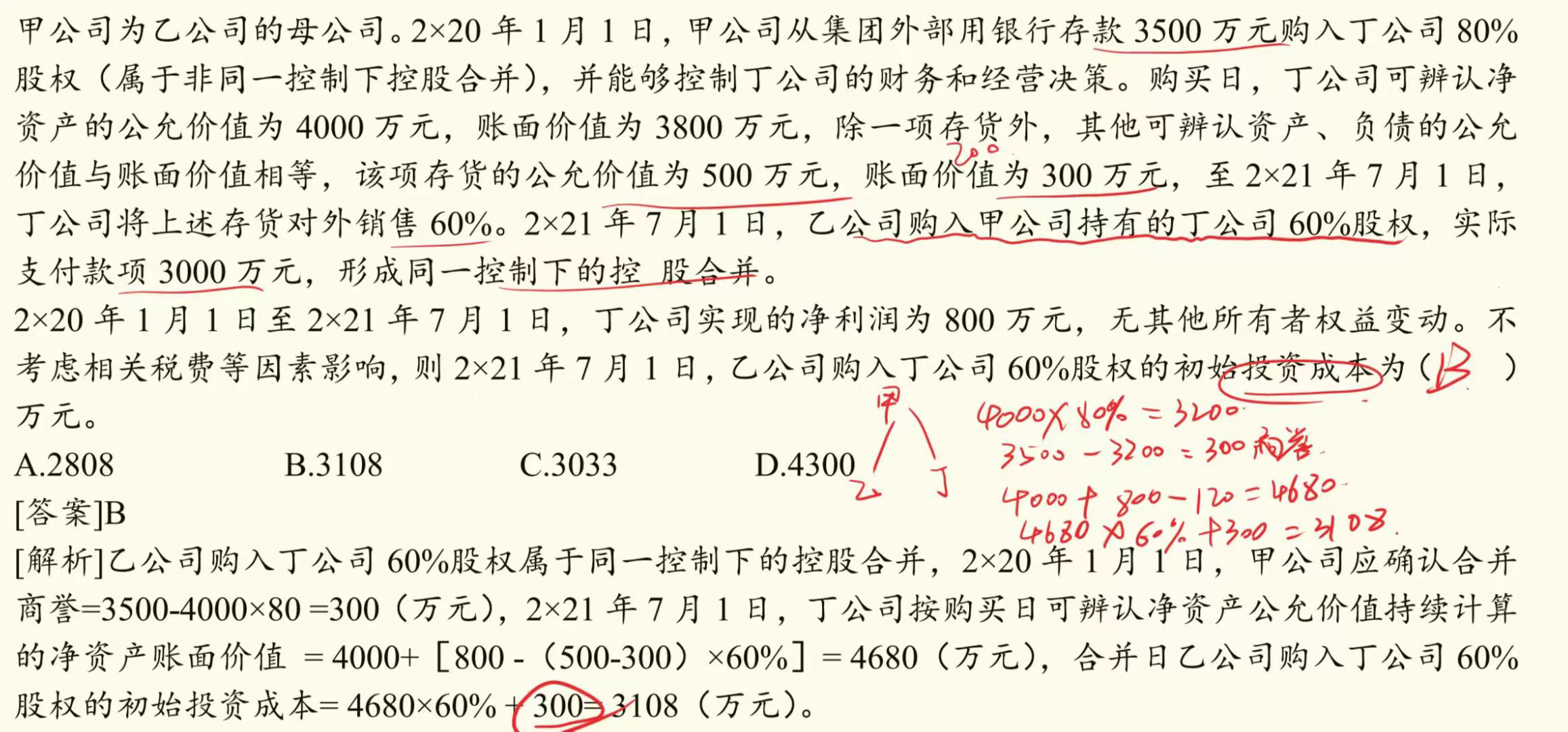 同学您好 因为对丁公司达到了控制,所以是整体商誉