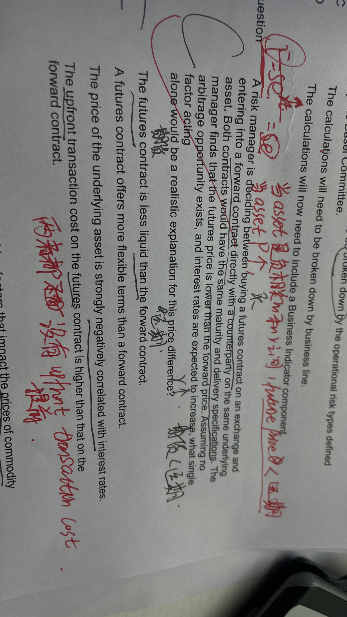同学你好,这道题的解析有问题,正确的分析过程是:当标的资产价格跟利率呈负相关时,当利率上涨,标的资产价格下跌,期货价格随着下跌,同时由于期货时每日结算,所以结算后的钱可以以更高的利率进行再投资,所以期货的收益率更高,收益率更高导致期货价格更低(收益率与价格呈反比)。
