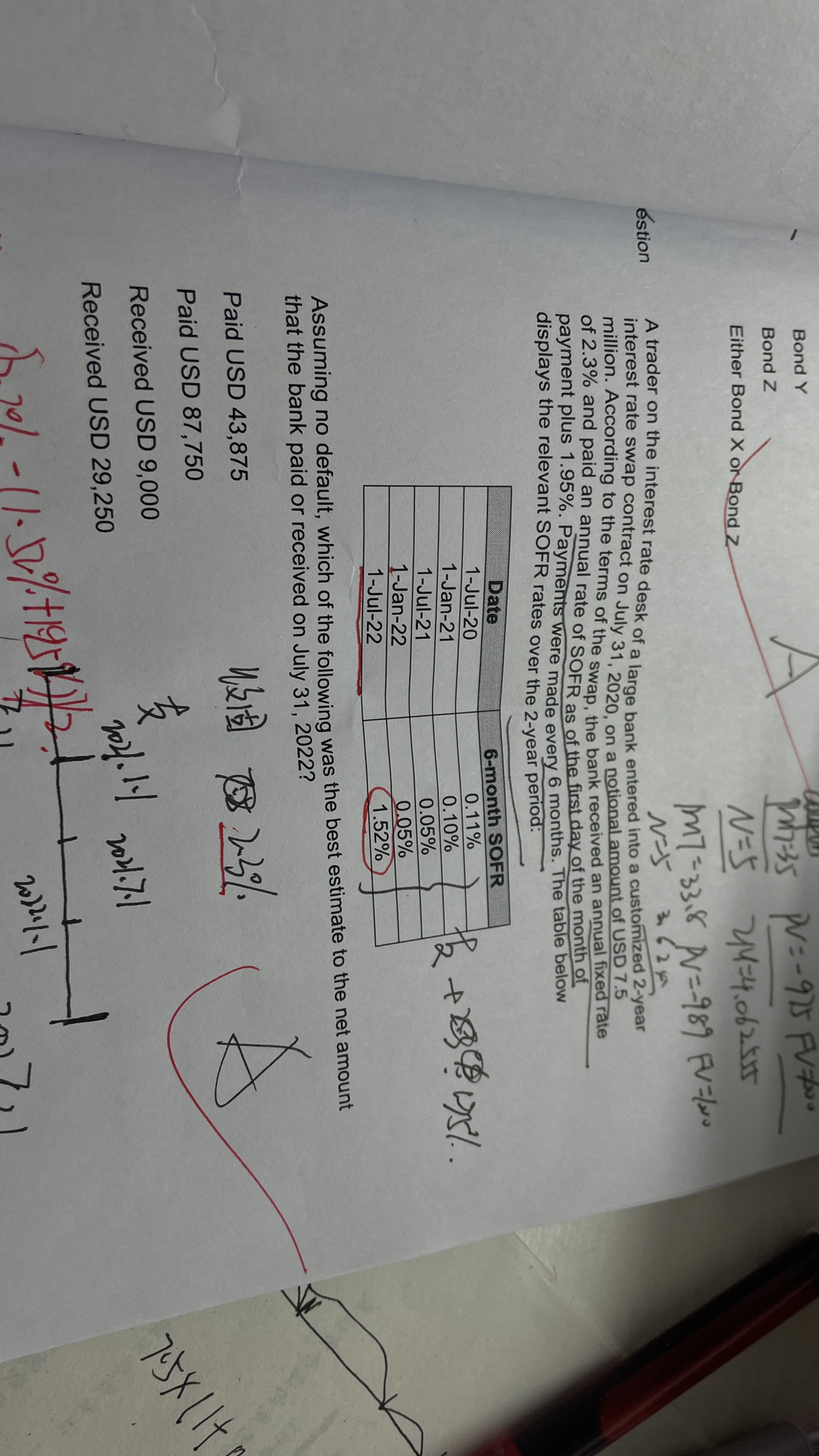 同学你好,因为支付的浮动端利率应该是上一次付息日的浮动利率,而 当前是2022.7.31,根据表格所示,离2022.7.31最近的上一次付息日就是2022.7.1,所以就是1.52%。