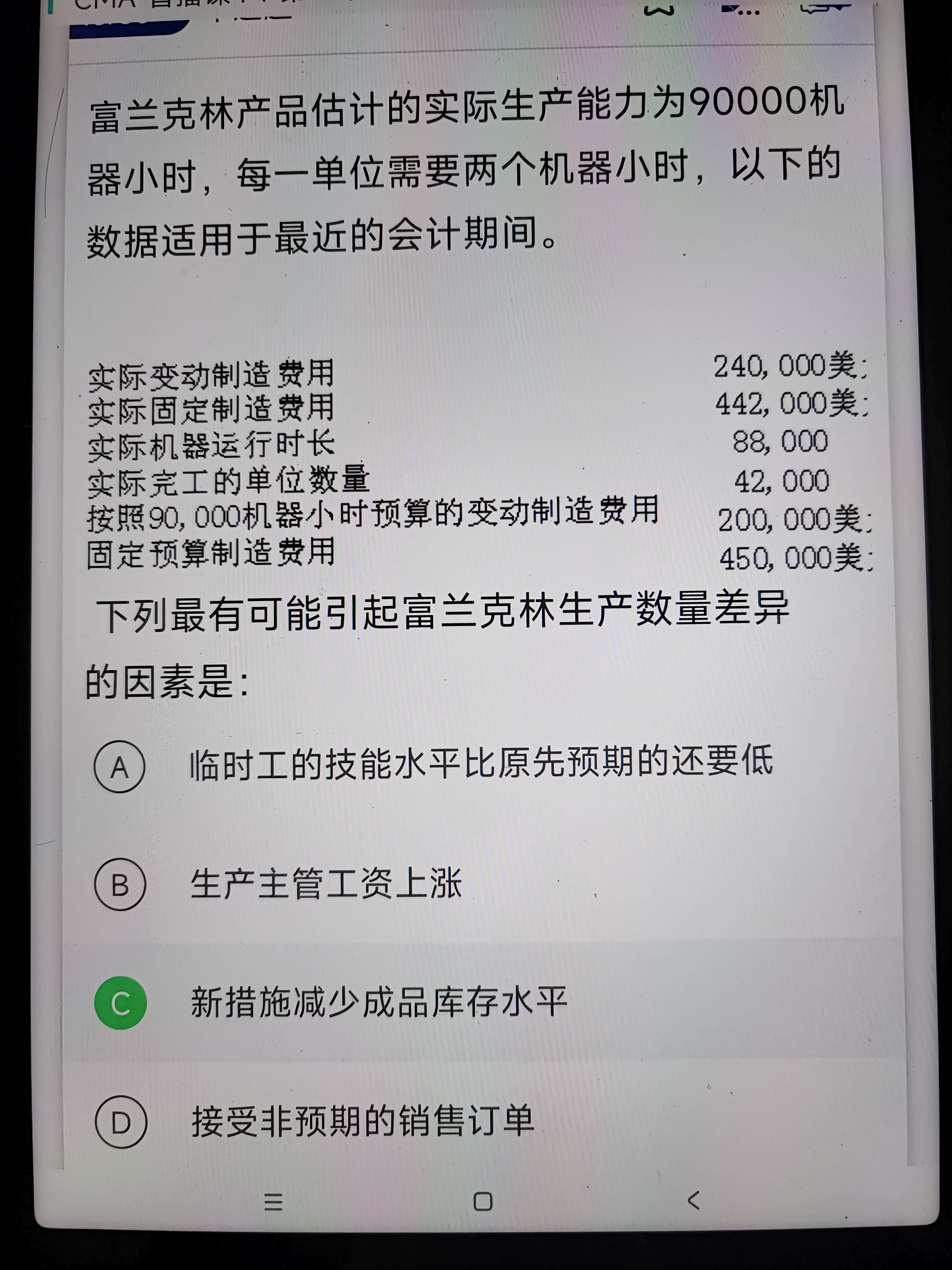 同学你好,产量差异=预算固定制造费用-吸收成本法下的固定制造费用,固定制造费用在吸收成本法下,是在产成品与期末库存之间进行分摊,新措施如果减少了期末库存,那产成本分摊到的固定制造费用会增多。所以会影响数量差异。