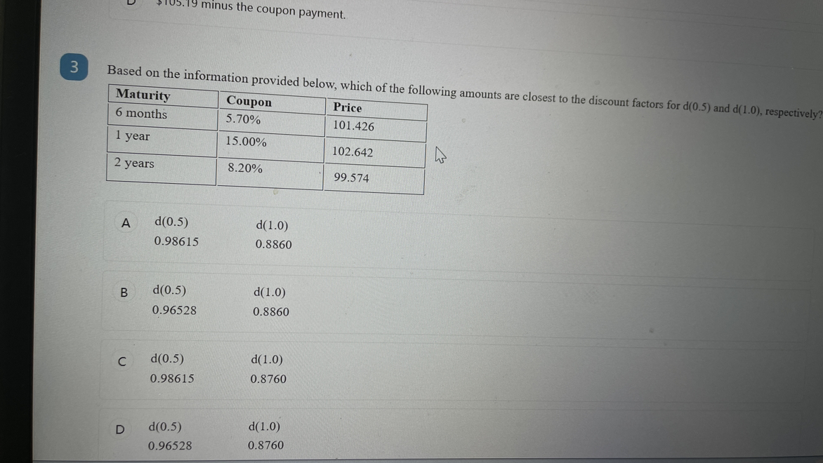 贴现因子是未来的1块钱在现在的价值。未来到期时,债券回归了面值100,你的coupon呢,coupon是不是也属于未来的价值?