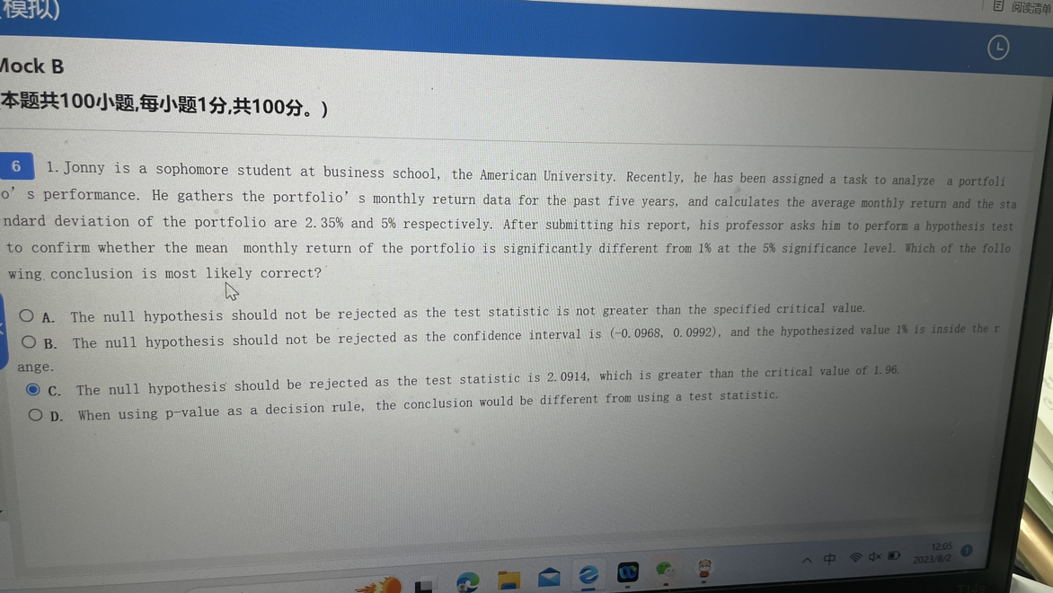 这题直接用已知条件就能算z统计量,算出来以后和5%显著性水平下的关键值比较就可以了。你是对哪个步骤有疑问?