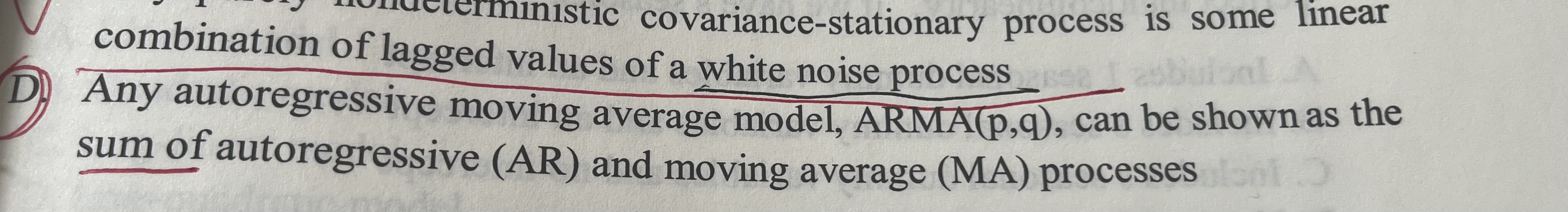 同学你好,ARMA模型的形成除了是AR模型和MA模型的合并之外,还有其他的生成模式,比如:1.AR模型的随机冲击自身服从MA过程;2.AR过程中存在测量误差,往往就能演变成ARMA过程。
