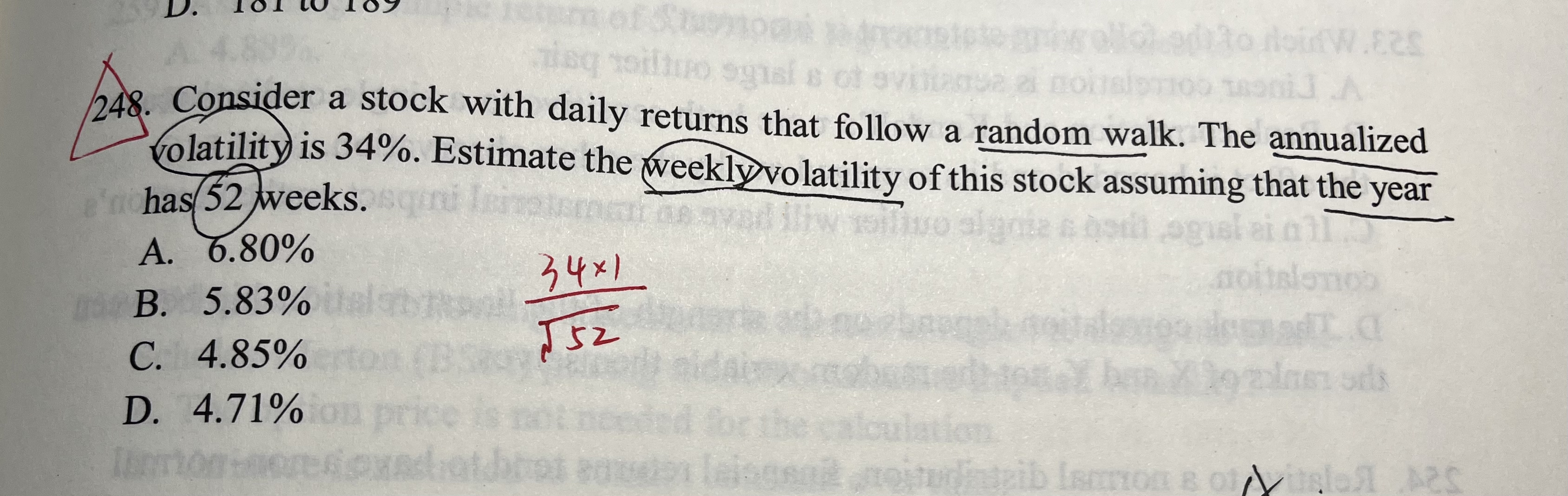 同学你好,这道题考察的是波动率的平方根法则,在第十二个章节:Measuring Returns,Volatility, and Correlation有讲到。