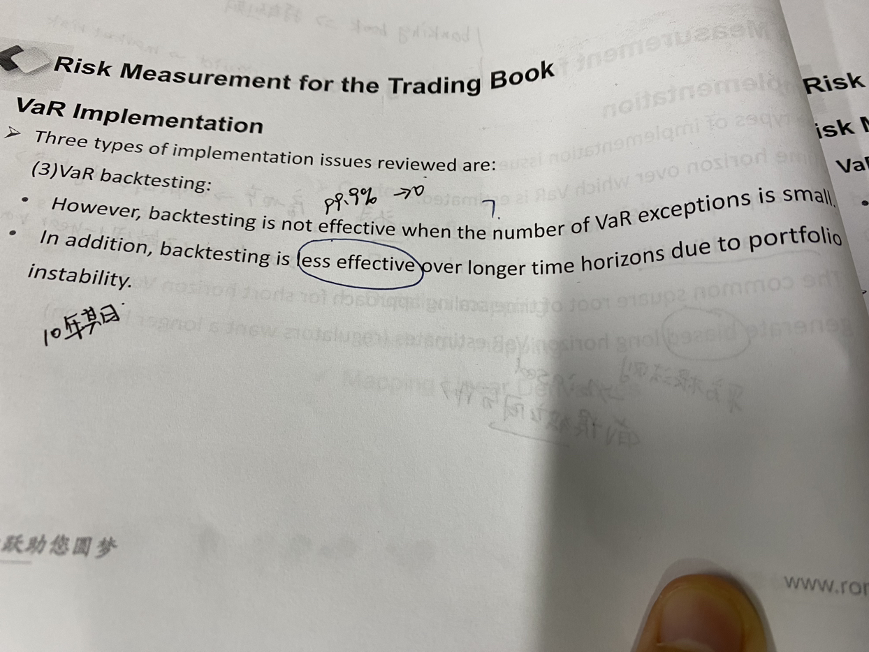 同学你好,这句话的意思是说当回测的异常值太少时,会影响计算检验统计量的数值(导致分子中的X太小)太小,导致无法拒绝原假设,认为假设模型中的VAR是合理的,这道会导致检验失效。