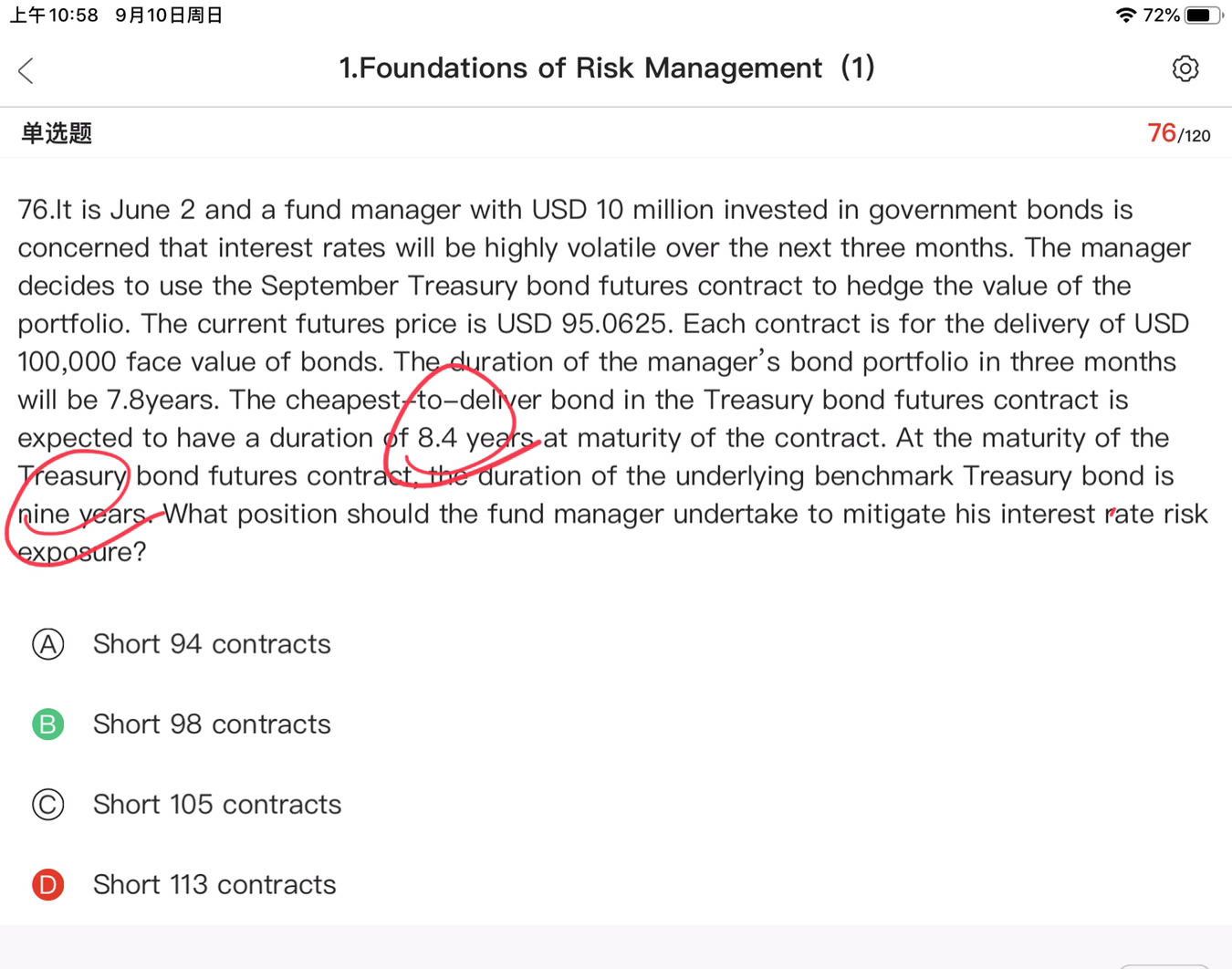 同学你好,8.4是CTD的久期,9是美国国债期货的标的资产美国国债的久期,对冲的时候肯定是用CTD的久期。