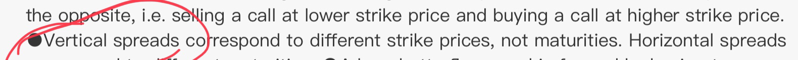 同学你好,horizon spread指的是执行价格相同而到期时间不同的期权组合,代表就是calendar spread vertical spread是垂直价差的意思,特征是到期时间相同而执行价格不同,包括Bull spread、bear spread、Butterfly spread. 在期权交易策略章节有讲