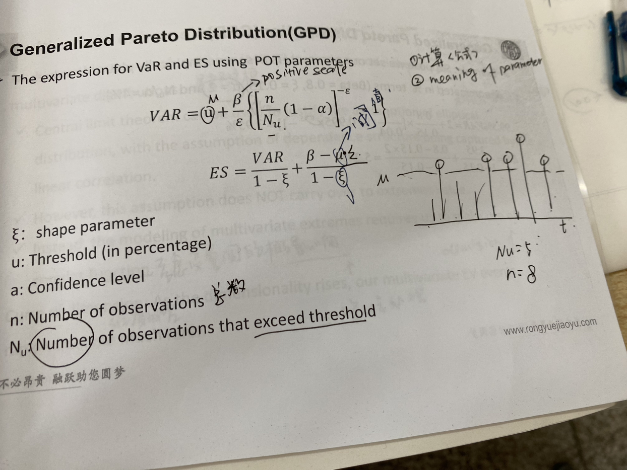 同学你好,u上升会导致Nu下降,从而导致VaR上升,而VaR值上升的影响是比u对ES公式中第二项分子上的影响更大的。