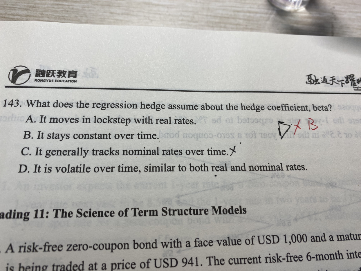 同学你好,因为只有假定贝塔是常数,还有知道久期和DV01之后才能代入对冲公式计算出被对冲工具的数据。