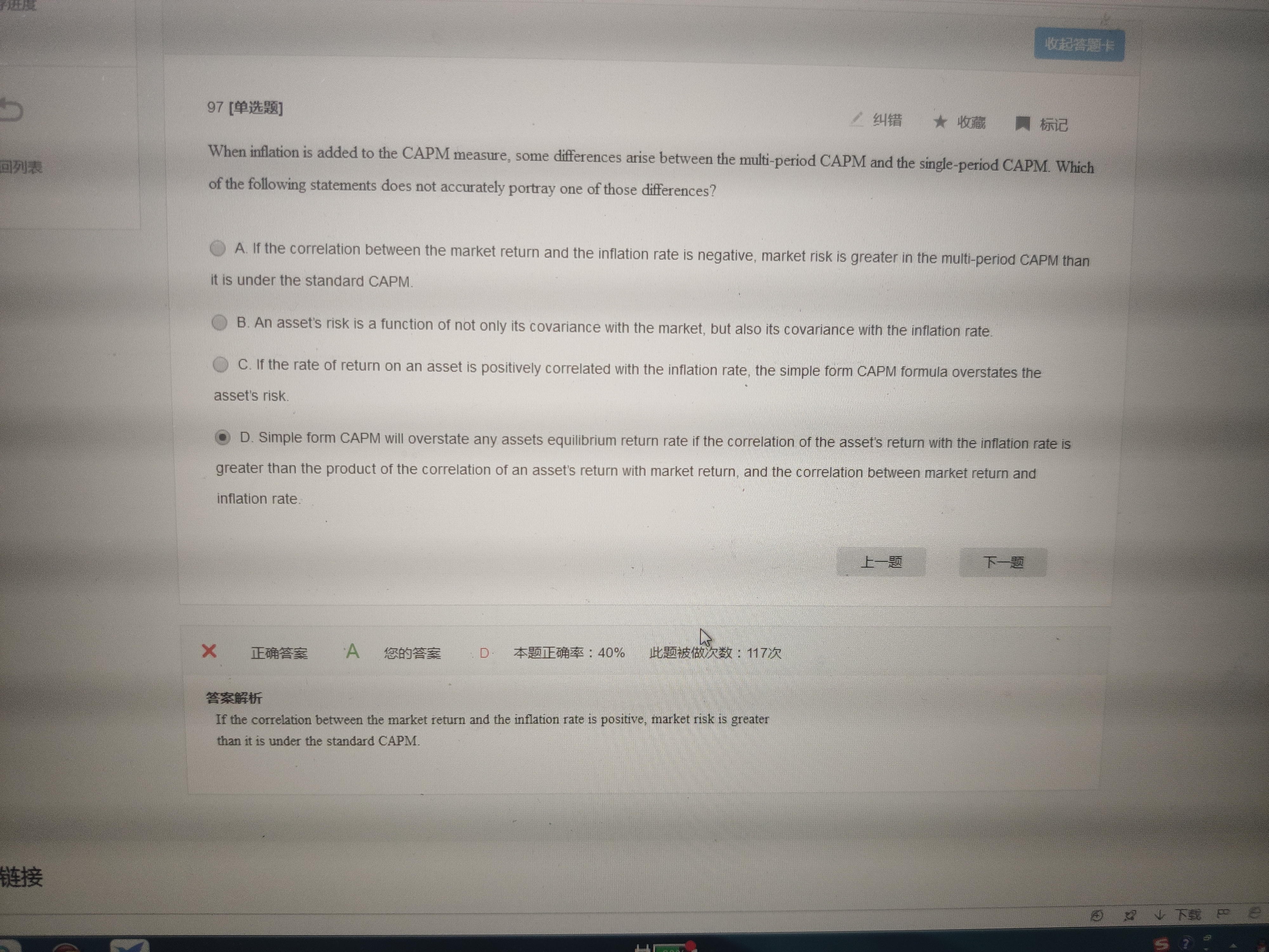 correlation是负数,所以β变小,所以markrt risk应该是越来越小。correlation是正数,所以β变大,所以markrt risk应该是越来越大。
