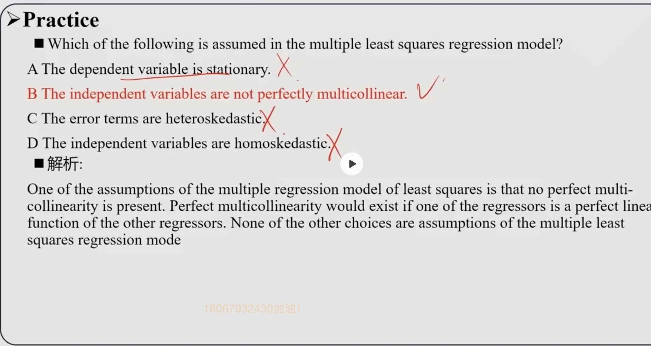 很多题目说法不严谨,把误差跟残差混着用,同方差假设严格来说指的是残差项的方差等于常数,了解即可。