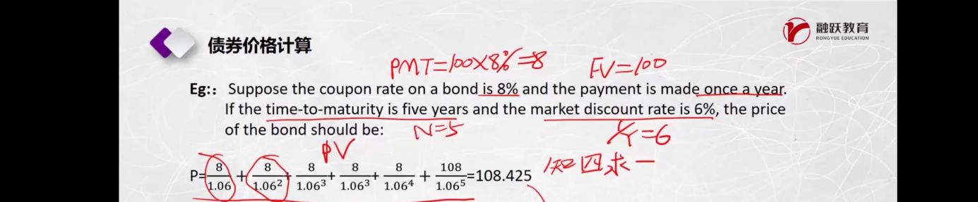 将未来每个时间点出现的现金流向0时刻贴现,最后就能计算出债券的价格
