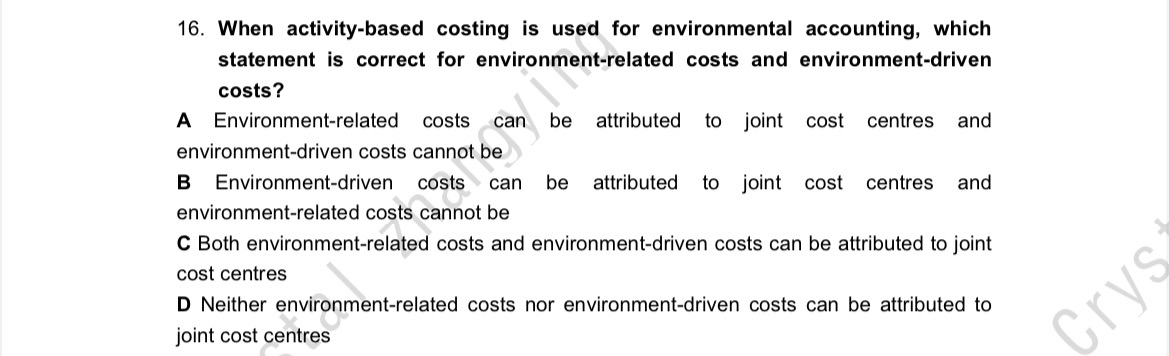 同学,Environmental related costs直接导致的,例如处理污染成本;environmental driven costs隐藏在general overhead中的,无法完全剥离出来的。