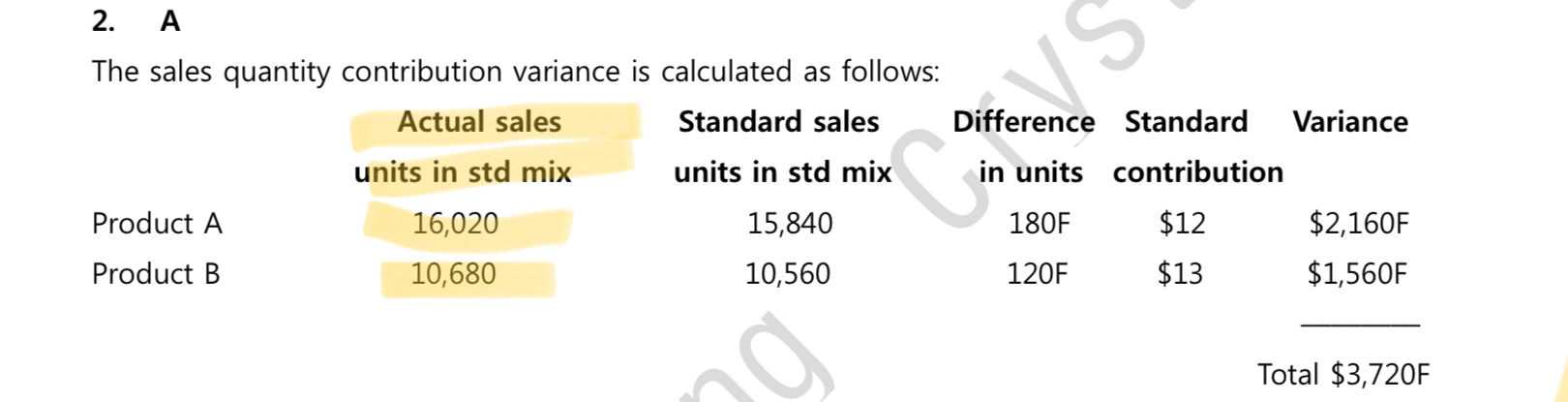 同学,实际A和B两个销售量是14200+12500=26700,std mix是15840:10560,那么AQSM-A=26700*15840/(15840+10560)=16020; AQSM-B=26700*10560/(15840+10560)=10680。