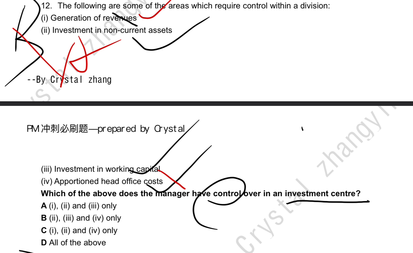 同学,investment中心负责revenue和cost,从而控制投资利润,分摊过来的总部的办公费是总部直接分摊过来的,跟投资中心的管理者没有关系。