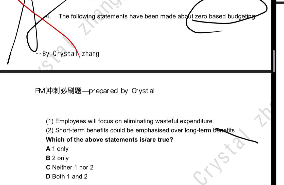 同学,2对是因为从零开始编制的预算想不到那么多,那么久远的长期利益。1对是因为因为要从零开始,所以会额外关注一下是否浪费的问题,重新评估一下。