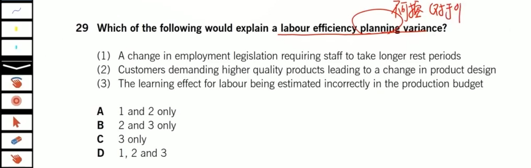 同学,对于劳动效率不可控的情况,1是由于法律不可控,2是由于设计改变不可控,3是由于预估错了学习曲线影响不可控。