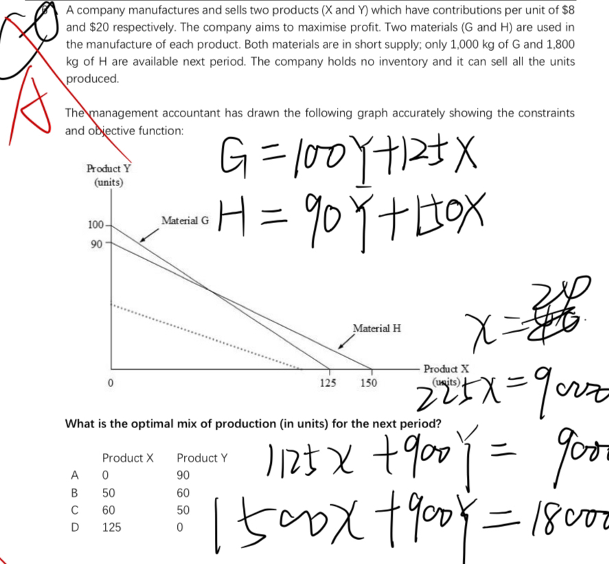 同学,看图直接作答,将向右上虚线平移,看那个点是GH和X轴和Y轴框出来的最远的点,可以用尺子平移一下,最后是(0,90)这个点最远。