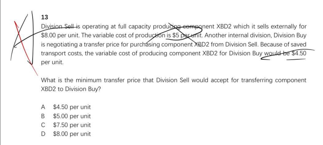 同学,最低的转移定价是5,因为是full capacity。