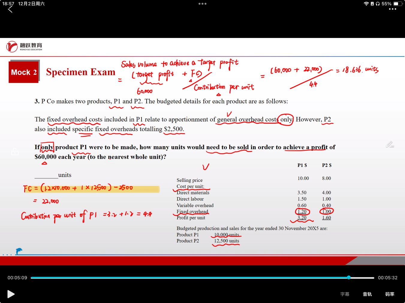 同学,加的是P2的general的部分,生不生产general的都是固定不变的,扣减P2的specific部分。