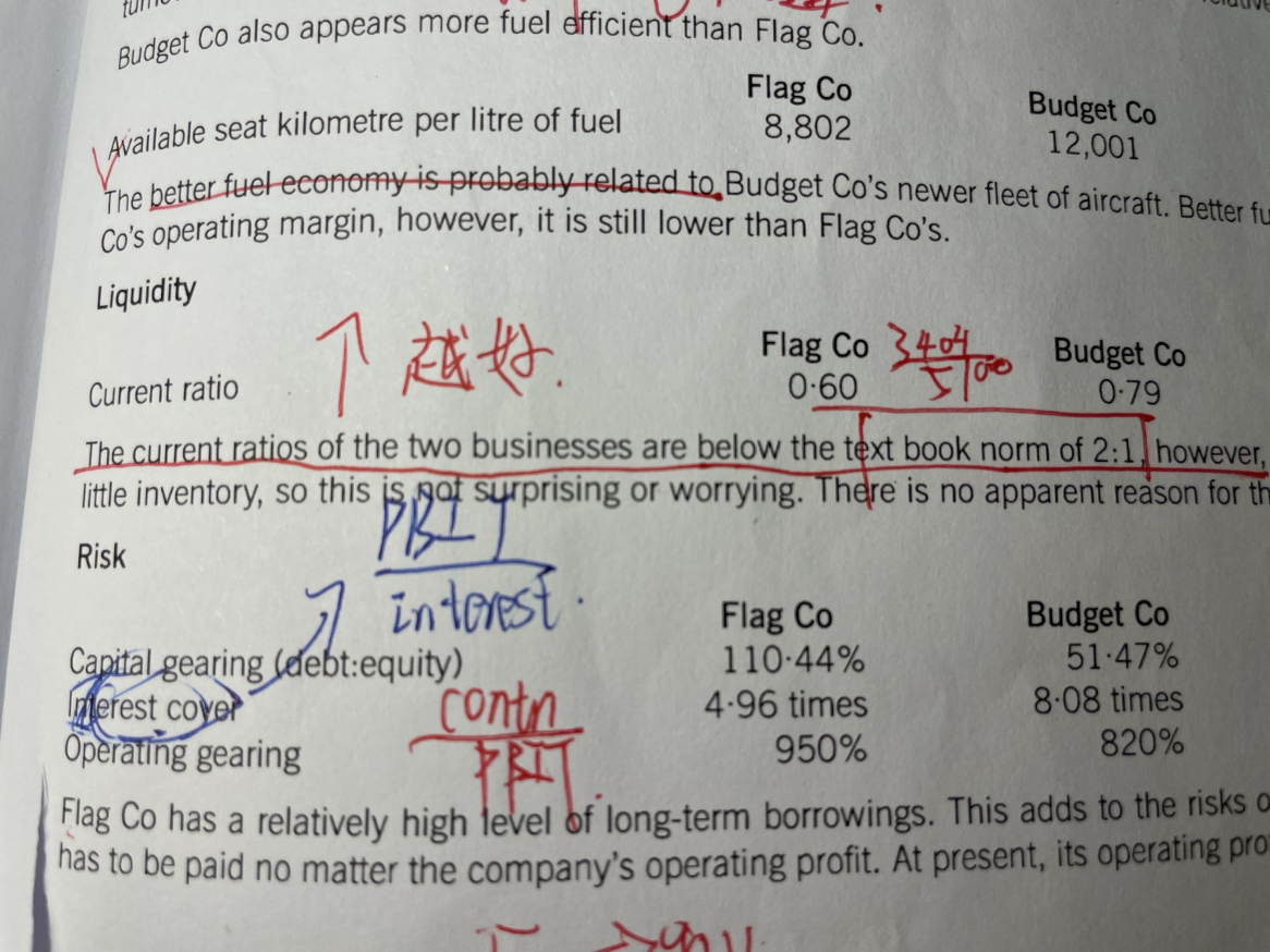 capital gearing FLAG CO = 5078/4598 operating gearing 题目中最后一个表格已知数据,需要认真读题