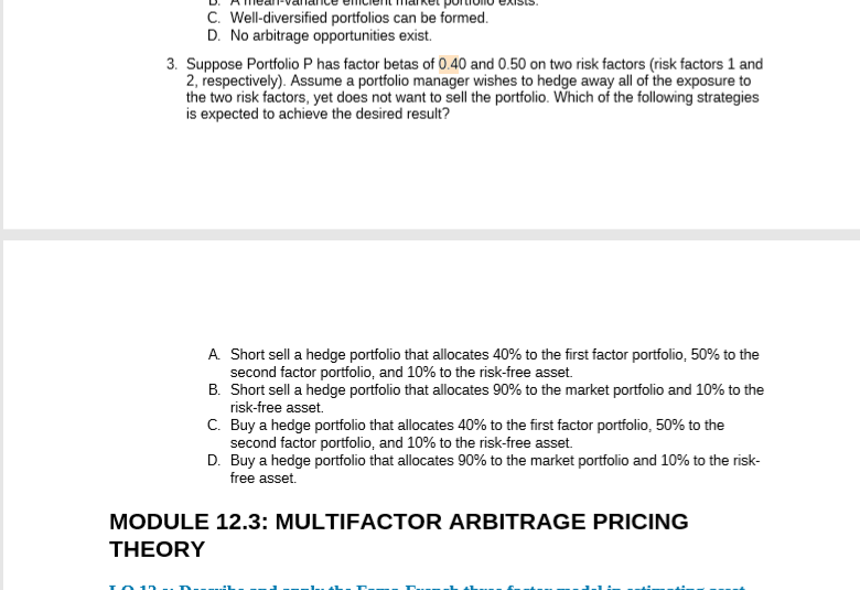 同学你好,这是notes的原题。你看解释里讲的,充分分散组合的beta等于1,不同资产的权重是影响组合的beta值的。