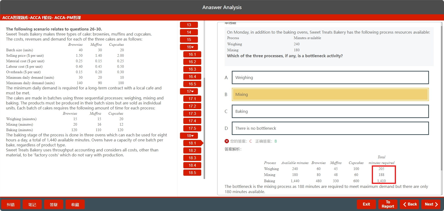 同学,B:最大140,每批40,那么需要140/40=3.5,批次没有半批算4,那么乘以每批的分钟数15,就是60,其他流程同理;M:最大90,每批30,那么需要90/30=3,那么乘以每批的分钟数15,就是45,其他流程同理;C:最大100,每批20,那么需要100/20=5,那么乘以每批的分钟数20,就是100,其他流程同理。